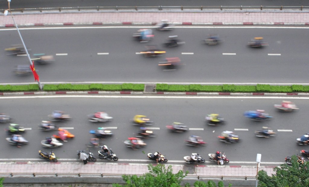Finally, the unique energy and ambiance this city possesses. When you arrive in Saigon, there is no middle ground; you are met with a multitude of extremes: The traffic has the ferocity of a starved predator; cars and motorbikes veer around pedestrians and one another with only millimeters of room to play with. Stray dogs run amiss beneath your feet. The ears fill with the yelling of merchants, attempting to sell or barter whatever it is they have. Live caged chickens await slaughter only footsteps away from luxury hotels. Street children with tattered clothes beg on the sidewalk while unfazed onlookers stuff their faces with food. Multimillion-dollar construction projects tower over dirty and decayed apartment buildings.
